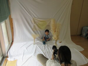 はじめは、ママと一緒でしたが、最後には一人でにこにこ撮影できました![]()